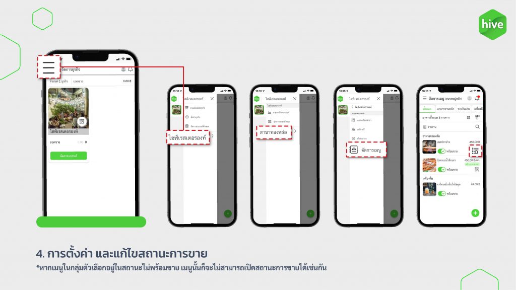 จากนั้นให้ร้านค้ากดเปิด ‘สถานะเมนูพร้อมขาย’ ก่อนการขายสินค้า เพื่อให้ระบบสามารถแสดงการตั้งขายสินค้าในร้านได้